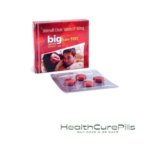 Bigfun 100mg Tablet contains sildenafil that works by relaxing the blood vessels in the penis, thereby allowing the blood to flow into the penis when the person is sexually excited. Bigfun 100 mg also relaxes the blood vessels, increases blood supply to the lungs, and reduces the heart’s workload. Thereby, treating pulmonary hypertension.